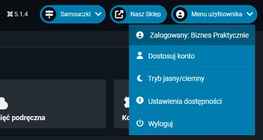 Tutaj dowiesz się, w jaki sposób zarządzać swoim kontem administratora. Kliknij w prawym górnym rogu na menu użytkownika.
