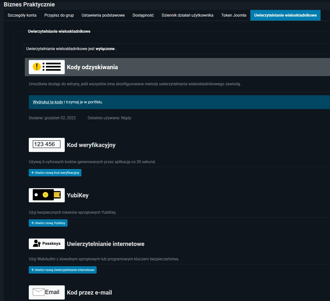 Jak włączyć weryfikację dwuetapową w Joomla 5?
