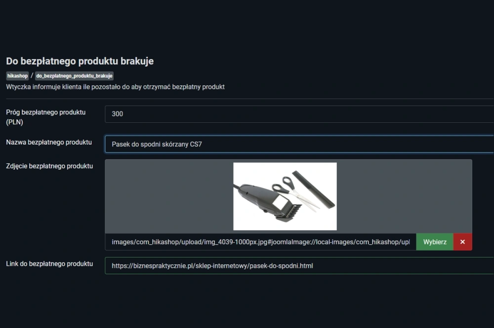 Do bezpłatnego produktu brakuje ci X zł: dla pozostałych Klientów nie korzystających dotąd z usług Biznes Praktycznie, posiadających sklep Hika Shop Business